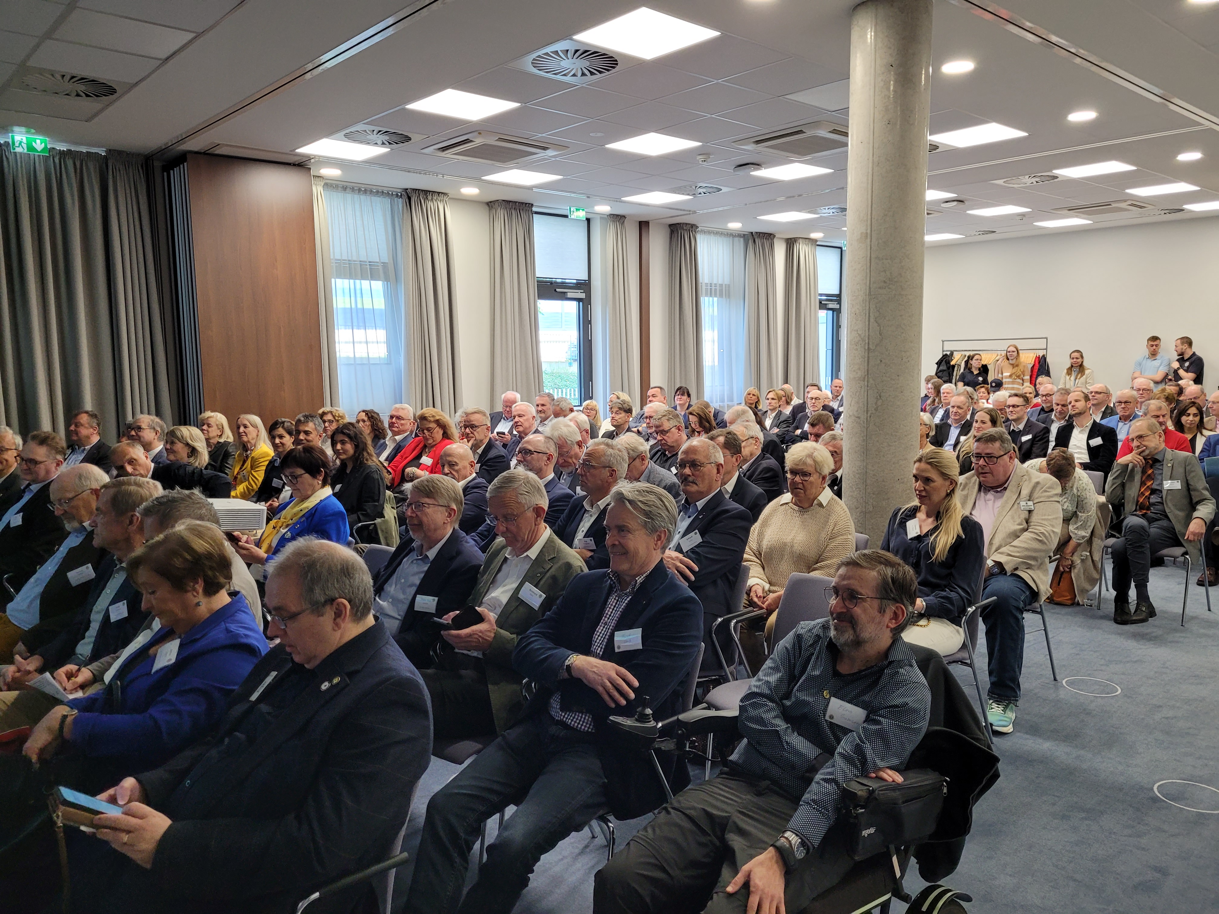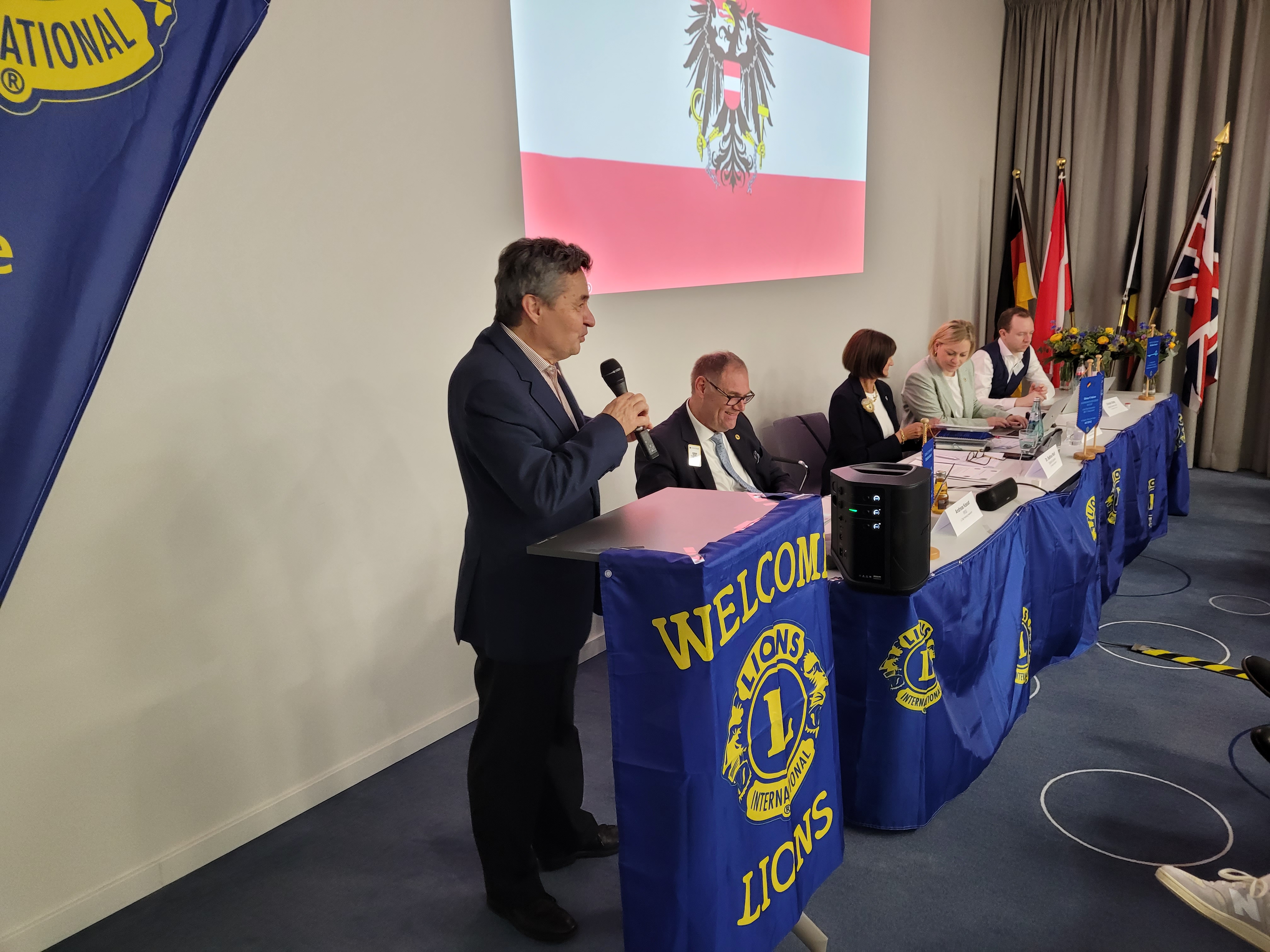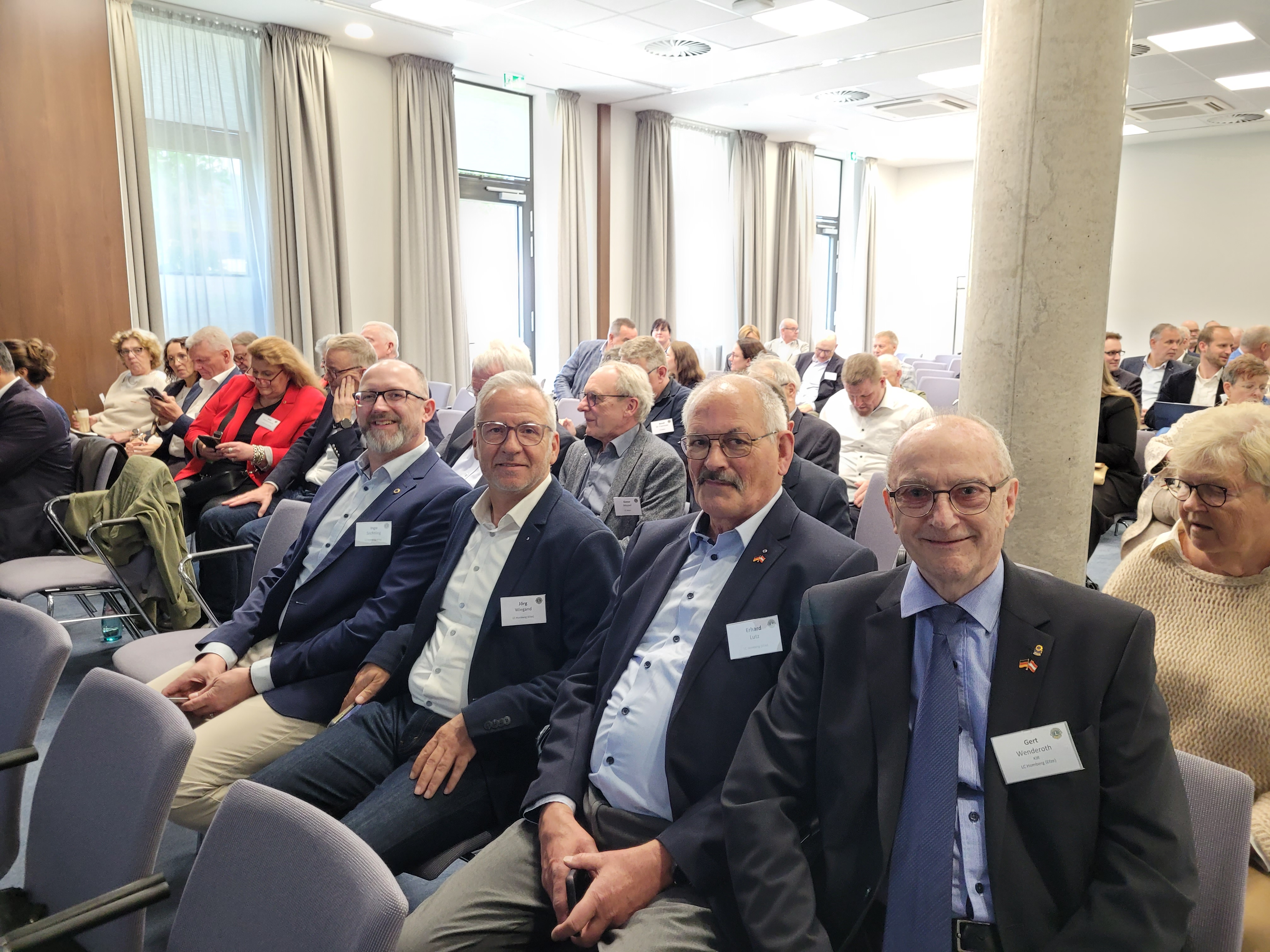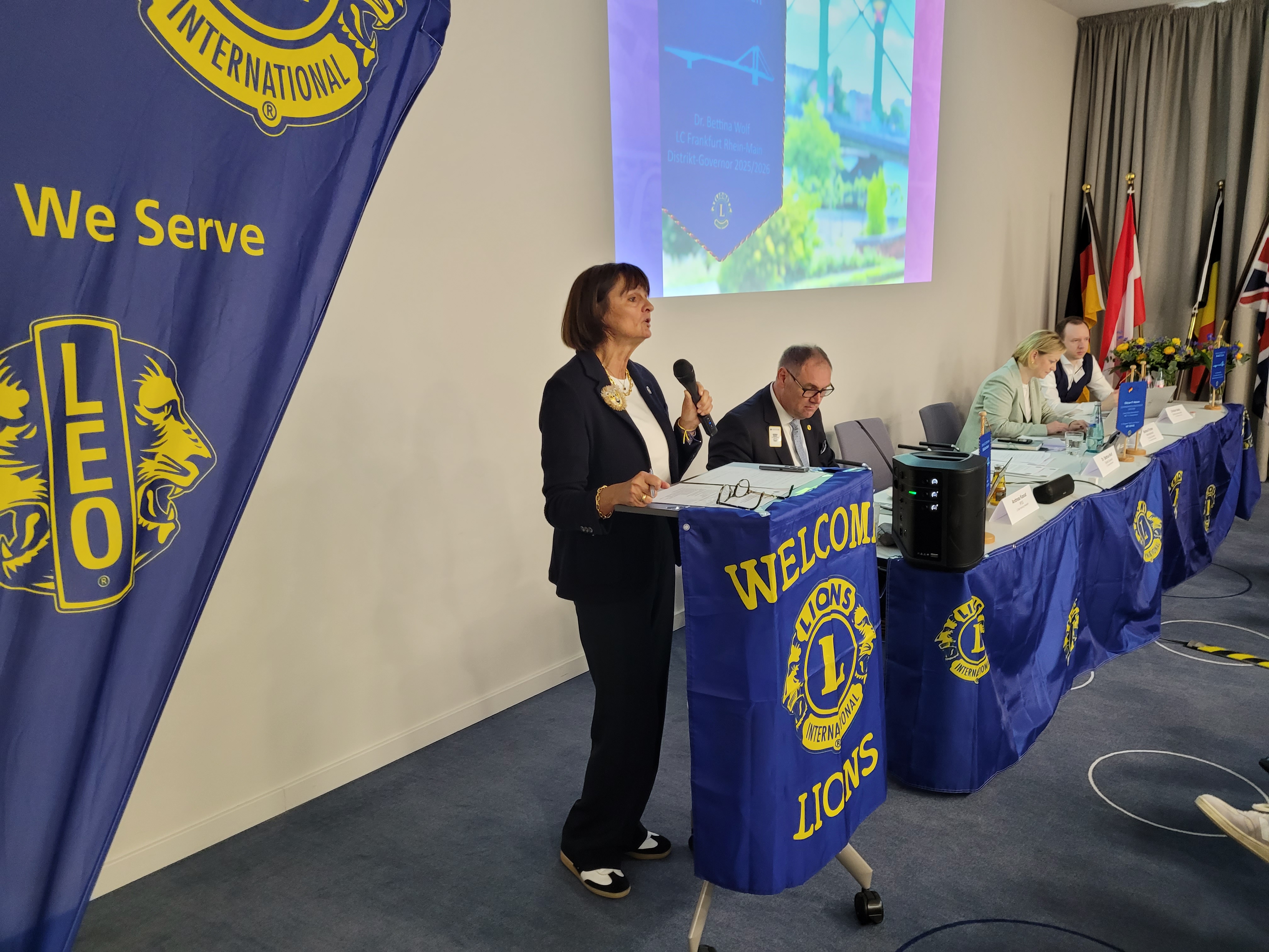 Als Delegierte unseres Clubs waren 2. VP Ingo Sechtling, IPP Jörg Wiegand, PP Erhard Lutz und IR Gert Wenderoth auf der 2. Distriktversammlung am 18. April 2026 in Bad Vilbel. Auf der Tagesordnung standen nicht nur viele Grußworte, Ehrungen und Berichte, es gab auch die Wahlen zur nächsten Governor-Crew. Die Fotos zeigen Ausschnitte aus der Sitzung mit der acting DG Dr. Bettina Wolf bei der Eröffnungansprache, das Plenum, den Gastredner IRO Harald Schmidt für den Jumelage-Distrikt 114-Ost, die nächste Governor-Crew mit DGelect Christian Satzky, 3. VG Bettina Stark, 2. VG Jörg Börstianghaus, 1. VG Barbara Förster und die DG Dr. Bettina Wolf, auf dem fünften Foto unsere Delegation.